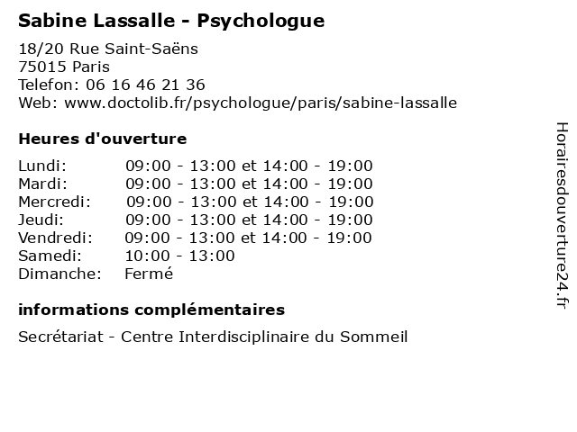 | Lundi | 09:00-13:00 et 14:00-19:00 |