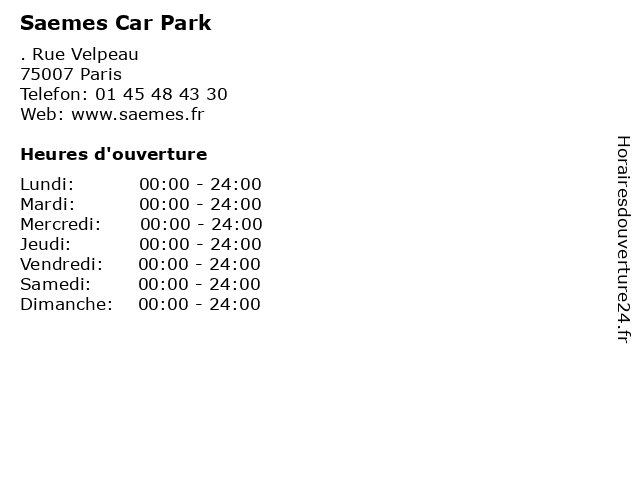 1 Saemes Car Park (Distance: 1,13 km) 9 Rue Auguste Comte, 75006 Paris car, park, parking, saemes, services 2 Saemes Car Park (Distance: 1,37 km) 69 Boulevard Pasteur, 75015 Paris car, park, parking, saemes, services 3 Saemes Car Park (Distance: 1,70 km) 45 Rue Gay Lussac, 75005 Paris car, park, parking, saemes, services 4 5 Saemes Car Park (Distance: 1,72 km) . Place du parvis Notre Dame, 75004 Paris car, park, parking, saemes, services 6 Saemes Car Park (Distance: 1,91 km) 37 Boulevard St Germain, 75005 Paris car, park, parking, saemes, services |