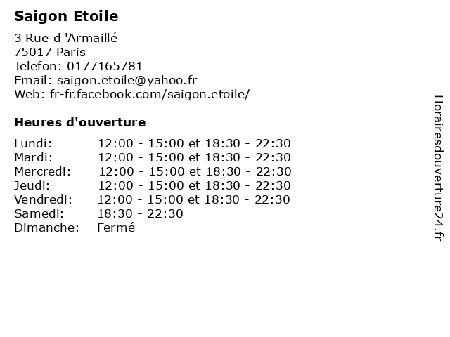 Termes de recherche pour Saigon Etoile:restaurant, alimentation, brasserie, saigon, etoile, terrasse, parking |