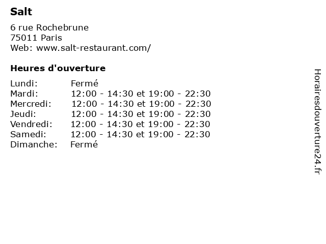 | Mardi | 12:00-14:30 et 19:00-22:30 |