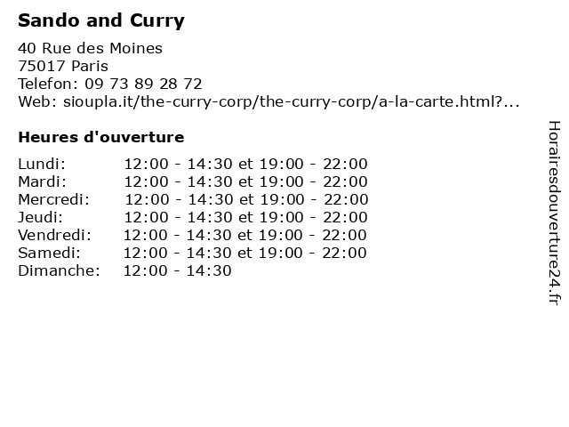 | Samedi | 12:00-14:30 et 19:00-22:00 |