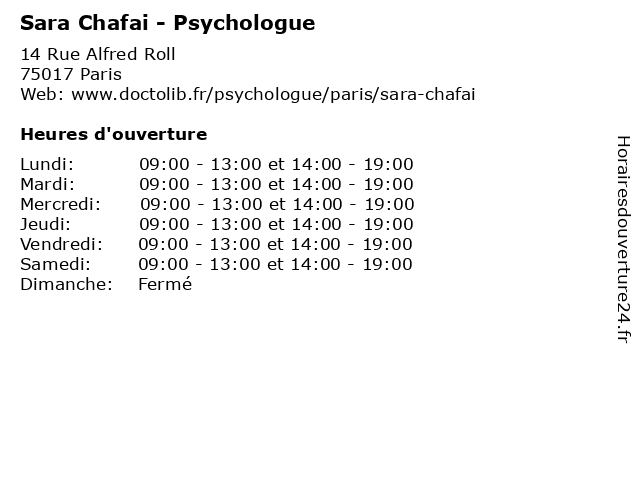 | Mardi | 09:00-13:00 et 14:00-19:00 |