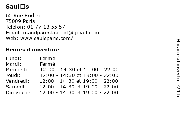 | Samedi | 12:00-14:30 et 19:00-22:00 |