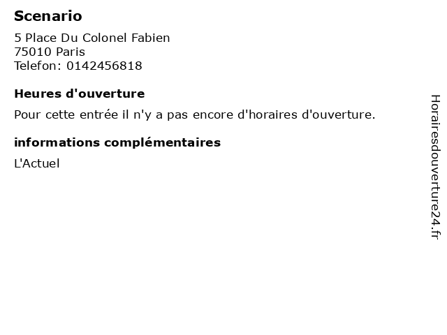 1 Mercure Le Scenario Aparthotel (Distance: 9,65 km) 63 Place René Clair, 92100 Boulogne aparthotel, bar, hotel, le, mercure, restaurant, scenario, service 2 Restaurant Le Scenario (Distance: 11,20 km) 36 Avenue Jean Baptiste Champeval, 94000 Créteil alimentation, brasserie, le, parking, restaurant, scenario, terrasse 4 Actuel Beauté (Distance: 3,82 km) 32 Rue de Laborde, 75008 Paris actuel, beauté, institut de beauté, manucure, soins, spa, épilations 5 Decor Actuel (Distance: 4,50 km) 80 rue Claude Bernard, 75005 Paris actuel, ameublement, decor, magasins 6 Academie Sciences d Outre-Mer (Distance: 5,70 km) 15 Rue La Perouse, 75116 Paris academie, et actuel, l'outre-mer français passé, mer, outre, sciences |
