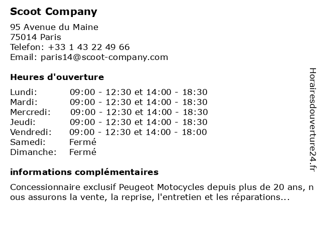 | Lundi | 09:00-12:30 et 14:00-18:30 |