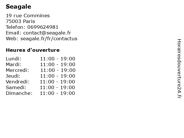| Lundi | 11:00-19:00 |