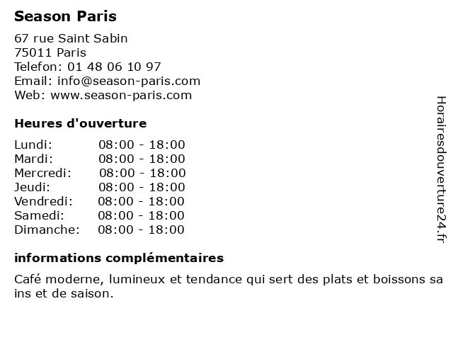 1 Season Marais (Distance: 0,74 km) 1 Rue Charles Francois Dupuis, 75003 Paris jca, marais, repas, restaurants, restauration, season 2 Season Take Away (Distance: 0,76 km) 8 Rue Dupetit Thouars, 75003 Paris away, bar, bistro, bistrot, brasserie, café, pub, restaurant, restauration, resto, season, take 3 Season Square (Distance: 2,95 km) 3 Rue Louise Weiss, 75013 Paris cuisine, restaurants, season, square 4 Restaurant Season (Distance: 3,13 km) 30 Avenue Trudaine, 75009 Paris bistrot, brasserie, café, restaurant, restauration, season 5 Land&Monkeys Beaumarchais (Distance: 0,01 km) 86 Boulevard Beaumarchais, 75011 Paris beaumarchais, café, land&monkeys, restaurant végétarien, restaurants, traiteur 6 Burger Theory (Distance: 0,32 km) 11 Boulevard Des Filles Du Calvaire, 75003 Paris burger, fast-food, restaurant de hamburgers, restaurant familial, restaurant français, restaurant pour le petit-déjeuner, restaurant sans gluten, restaurant végétarien, restaurants, theory |