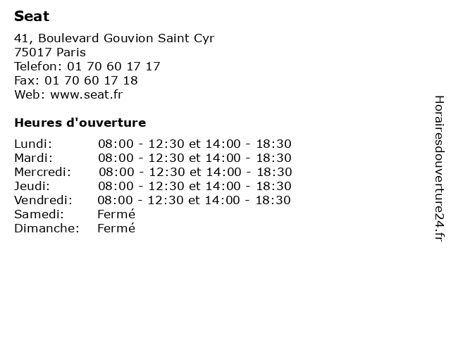 | Lundi | 08:00-12:30 et 14:00-18:30 |