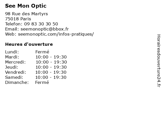 1 Mon-enfant.fr (Distance: 0,08 km) 1 la Vieuville, 75018 Paris caregivers houses, child care, enfant.fr, family home, home care, kindergartens, micro-nurseries, mon, parental home 2 Mon-enfant.fr (Distance: 0,41 km) 17 Rue Pierre PIcard, 75018 Paris caregivers houses, child care, enfant.fr, family home, home care, kindergartens, micro-nurseries, mon, parental home 3 Opticien Paris - Optic 2000 (Distance: 0,53 km) 11 Rue de Clignancourt, 75018 Paris 2000, lentilles de contact, lunettes de soleil, lunettes de vue, optic, optic2000, opticien, opticien optic2000, paris, ray-ban, rayban 4 Opticien Paris - Optic 2000 (Distance: 0,62 km) 34 Rue des Martyrs, 75009 Paris 2000, lentilles de contact, lunettes de soleil, lunettes de vue, optic, optic2000, opticien, opticien optic2000, paris, ray-ban, rayban 5 Kif Optic (Distance: 0,85 km) 20 rue de Maubeuge, 75009 Paris kif, lunettes, monture, optic, opticien, optique, solaire, vue 6 My Little Optic (Distance: 0,91 km) 37 Rue Saint-Lazare, 75009 Paris little, lunettes, monture, my, optic, opticien, optique, solaire, vue |