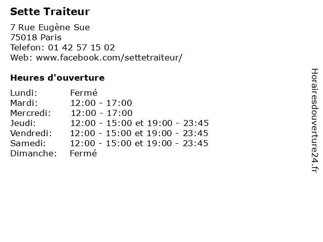 | Vendredi | 12:00-15:00 et 19:00-23:45 |