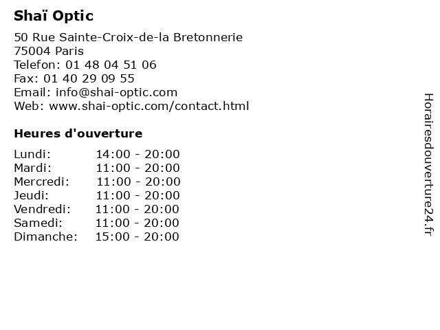 | Mercredi | 11:00-20:00 |