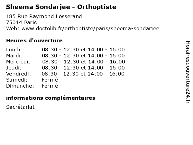 | Mardi | 08:30-12:30 et 14:00-16:00 |