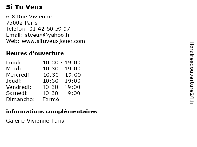 | Vendredi | 10:30-19:00 |
