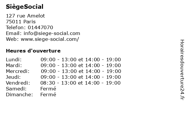 | Lundi | 09:00-13:00 et 14:00-19:00 |