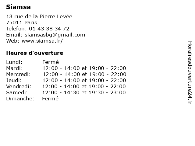 | Samedi | 12:00-14:30 et 19:30-23:00 |