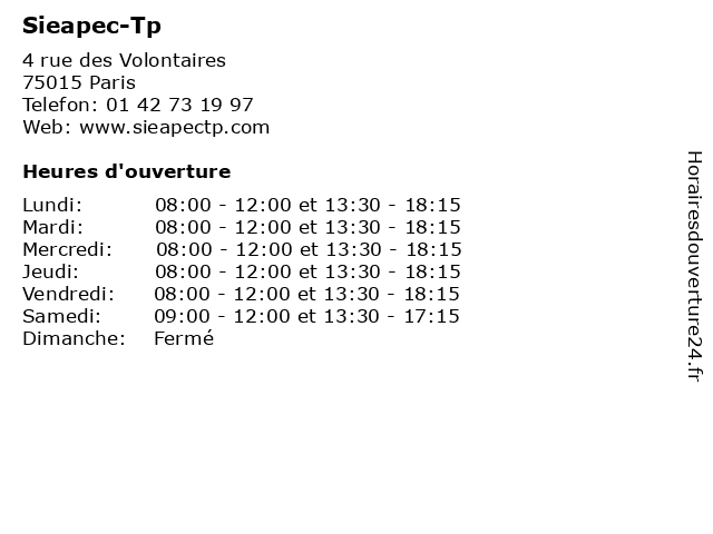 | Lundi | 08:00-12:00 et 13:30-18:15 |