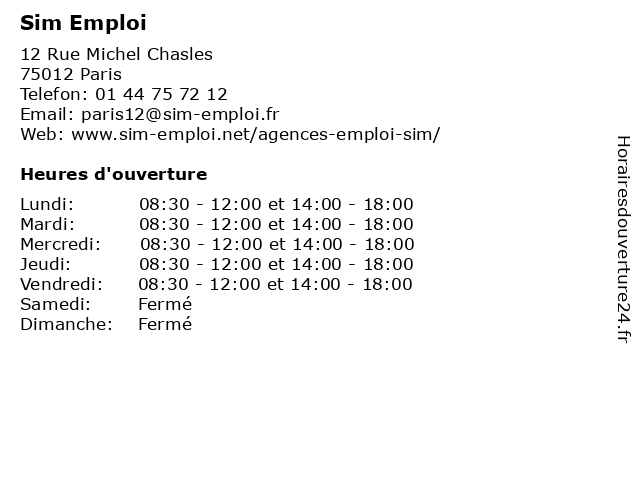 1 Sim Emploi (Distance: 6,62 km) 5 Avenue Mac-Mahon, 75017 Paris agence, emploi, emplois, intérim, offres, sim 2 Pôle Emploi Paris Diderot (Distance: 0,42 km) 3 boulevard Diderot, 75012 Paris administration, agence, candidats, diderot, emploi, employeurs, offres, paris, pole, public, publique, pôle, recherche, service, travail 3 APEC (Association pour l'Emploi des Cadres) (Distance: 0,60 km) 42-52 Quai de la Rapée, 75012 Paris apec, association, cadres, des, l'emploi, pour 4 Camo Emploi (Distance: 1,28 km) 1 Rue Voltaire, 75011 Paris agence, camo, emploi, emplois, intérim, offres, travail 5 Menway Emploi Paris Auto (Distance: 1,58 km) 29 Rue Saint-Maur, 75011 Paris auto, emploi, menway, paris 6 Menway Emploi Paris Digital (Distance: 1,58 km) 29 Rue Saint-Maur, 75011 Paris digital, emploi, menway, paris |