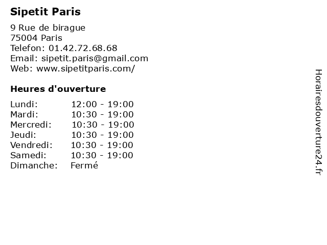 Horaires d'ouverture |