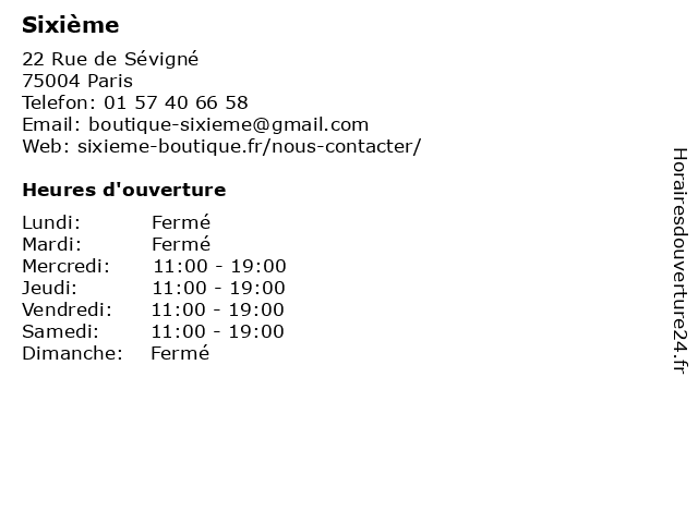 | Samedi | 11:00-19:00 |