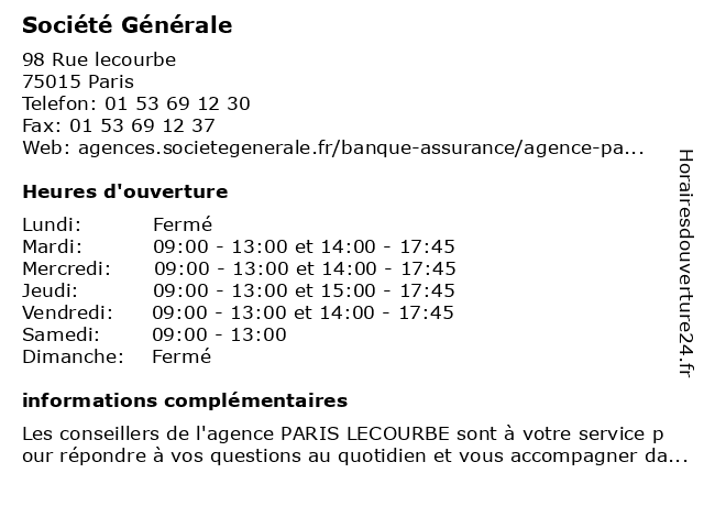 1 Société Générale (Distance: 0,31 km) 237 RUE DE VAUGIRARD, 75015 Paris agence, devis d'assurance automobile, générale, prêt à domicile, prêt à la consommation, société 2 Société Générale (Distance: 0,49 km) 6 PL CAMBRONNE, 75015 Paris agence, devis d'assurance automobile, générale, prêt à domicile, prêt à la consommation, société 3 Société Générale (Distance: 1,91 km) 39 Rue Balard, 75015 Paris agence, devis d'assurance automobile, générale, prêt à domicile, prêt à la consommation, société 4 Société Générale (Distance: 2,48 km) 123 Avenue de Versailles, 75016 Paris agence, devis d'assurance automobile, générale, prêt à domicile, prêt à la consommation, société 5 Société Générale (Distance: 2,70 km) 41 AV MONTAIGNE, 75008 Paris agence, devis d'assurance automobile, générale, prêt à domicile, prêt à la consommation, société 6 Société Générale (Distance: 3,39 km) 220 Avenue Pierre Brossolette, 92240 Malakoff agence, banque, crédit, générale, service, société, société générale, épargne |