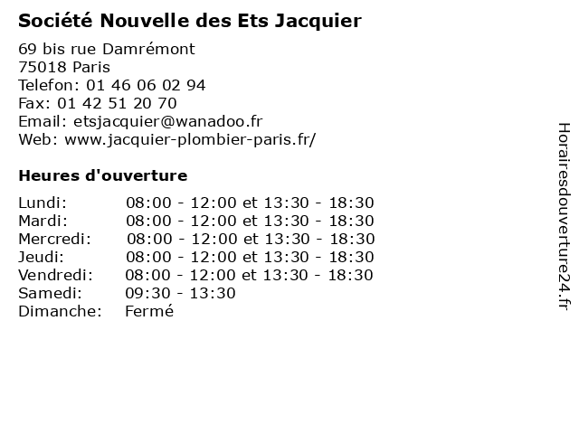 | Mardi | 08:00-12:00 et 13:30-18:30 |