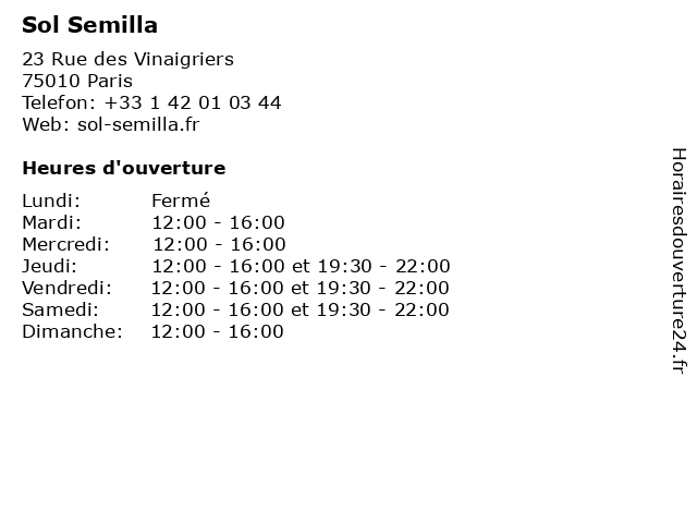 | Vendredi | 12:00-16:00 et 19:30-22:00 |