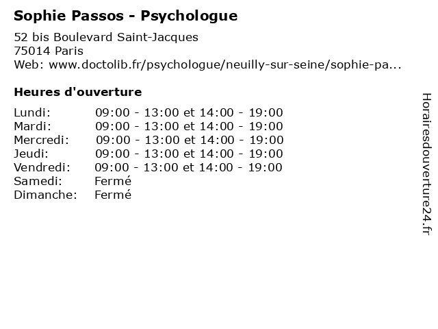 | Lundi | 09:00-13:00 et 14:00-19:00 |