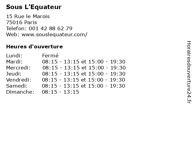 | Mardi | 08:15-13:15 et 15:00-19:30 |