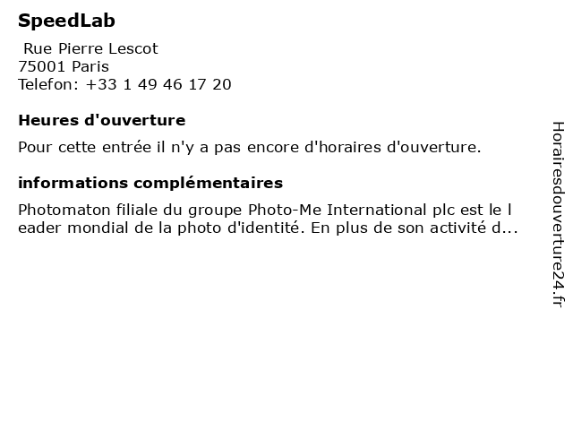 1 SpeedLab (Distance: 0,03 km) Rue Pierre Lescot, 75001 Paris speedlab