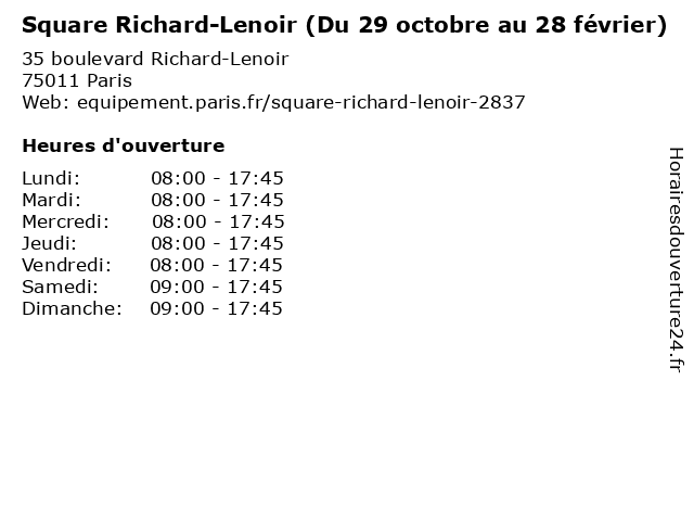 Termes de recherche pour Square Richard-Lenoir (Du 29 octobre au 28 février):du, au, jardin, parc, square, richard, lenoir, 28, octobre, 29, février |