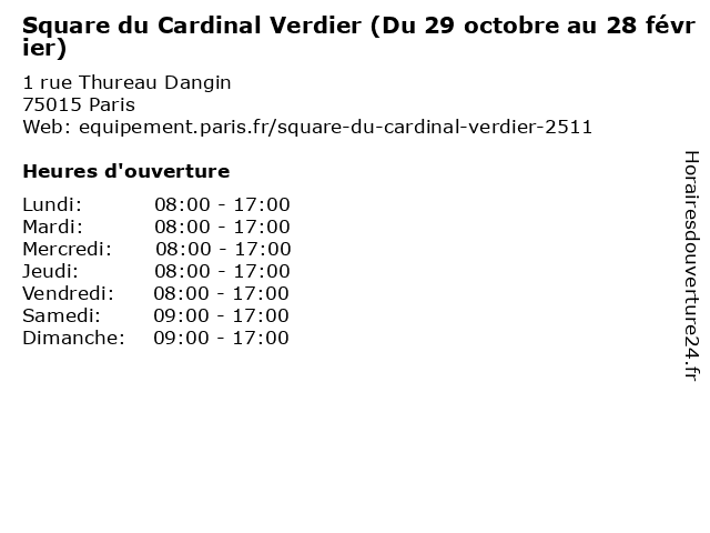 Termes de recherche pour Square du Cardinal Verdier (Du 29 octobre au 28 février):du, au, jardin, parc, square, cardinal, 28, octobre, 29, février, verdier |