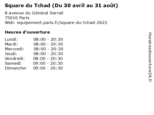 Termes de recherche pour Square du Tchad (Du 30 avril au 31 août):du, au, jardin, parc, 31, square, août, avril, 30, tchad |