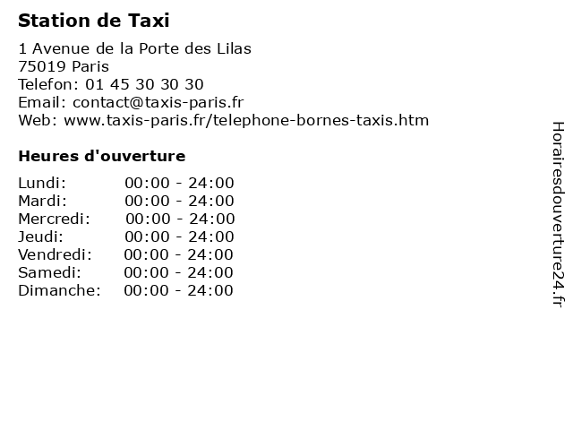 1 Station de Taxi (Distance: 0,25 km) - Porte des Lilas, 93260 Les Lilas de, station, taxi, trajets, voyages 2 Station de Taxi (Distance: 1,31 km) - Rue du Général Brunet, 75019 Paris de, station, taxi, trajets, voyages 3 Station de Taxi (Distance: 2,17 km) 211 Avenue Jean Jaurès, 75019 Paris de, station, taxi, trajets, voyages 4 Station de Taxi (Distance: 2,62 km) 122 Boulevard de la Villette, 75019 Paris de, station, taxi, trajets, voyages 5 Station de Taxi (Distance: 2,78 km) 1 Avenue Claude-Vellefaux, 75010 Paris de, station, taxi, trajets, voyages 6 Station de Taxi (Distance: 2,80 km) - Avenue de la Porte de la Villette, 75019 Paris de, station, taxi, trajets, voyages |