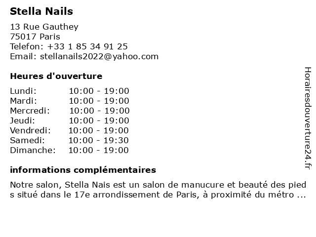 1 Eva Nails - Coiffure (Distance: 0,84 km) 26 Rue Biot, 75017 Paris beaute, coiffure, epilations, esthetique, eva, indian, nails, salon, soins, visage 2 Stella Studio (Distance: 1,16 km) 59 Boulevard Pereire, 75017 Paris business, photography, services, stella, studio, studios 3 Nails Colors (Distance: 1,22 km) 30 Rue de Constantinople, 75008 Paris colors, gel, manucure, nails, onglerie, soins, vernis 5 My Beauty Nails (Distance: 1,59 km) 85 boulevard Malesherbes, 75008 Paris beauty, gel, manucure, my, nails, ongle, pose, vernis 6 Elysees Nails Paris (Distance: 1,94 km) 3 Rue d'Argenson, 75008 Paris beauté, construction d'ongles artificiels, elysees, manucure, nails, ongles, paris |