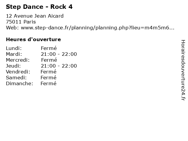 1 Step Dance - Afro House (Distance: 0,00 km) 12 Avenue Jean Aicard, 75011 Paris afro, centre, cours, dance, gym, house, l'exercice, muscles, santé, sport, step 2 Step Dance - West Coast (Distance: 0,00 km) 12 Avenue Jean Aicard, 75011 Paris centre, coast, cours, dance, gym, l'exercice, muscles, santé, sport, step, west 3 Step Dance - Salsa Cubaine (Distance: 0,00 km) 12 Avenue Jean Aicard, 75011 Paris centre, cours, cubaine, dance, gym, l'exercice, muscles, salsa, santé, sport, step 4 Step Dance - Rock 2 (Distance: 0,00 km) 12 Avenue Jean Aicard, 75011 Paris centre, cours, dance, gym, l'exercice, muscles, rock, santé, sport, step 5 Step Dance - Rock 1 (Distance: 0,00 km) 12 Avenue Jean Aicard, 75011 Paris centre, cours, dance, gym, l'exercice, muscles, rock, santé, sport, step 6 Fitness Price - Step (Distance: 1,14 km) 131 Boulevard de Charonne, 75011 Paris centre, cours, fitness, gym, l'exercice, la santé, le sport, les muscles, price, step |