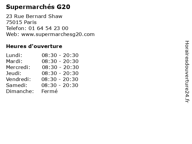 1 Supermarchés G20 (Distance: 0,91 km) 143 Rue Saint Dominique, 75007 Paris discount, g20, services, supermarche, supermarchés 2 Supermarchés G20 (Distance: 0,99 km) 5 Rue Jacquemaire Clemenceau, 75015 Paris discount, g20, services, supermarche, supermarchés 3 Supermarchés G20 (Distance: 1,05 km) . Rue de l'Annonciation, 75016 Paris discount, g20, services, supermarche, supermarchés 4 Supermarchés G20 (Distance: 1,45 km) 9 Rue Jean Nicot, 75007 Paris discount, g20, services, supermarche, supermarchés 5 Supermarchés G20 (Distance: 1,50 km) 269 Rue Lecourbe, 75015 Paris discount, g20, services, supermarche, supermarchés 6 Supermarchés G20 (Distance: 1,59 km) 22 Rue de Chaillot, 75016 Paris discount, g20, services, supermarche, supermarchés |