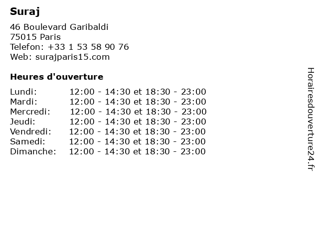 Samedi | 12:00-14:30 et 18:30-23:00 |