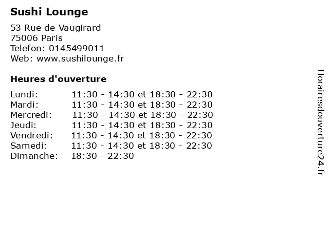 | Samedi | 11:30-14:30 et 18:30-22:30 |