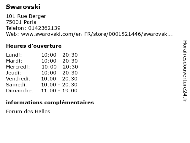 1 Swarovski (Distance: 0,99 km) 15 Boulevard Poissonnière, 75002 Paris jewelry, rings, stores, swarovski 4 Swarovski (Distance: 2,21 km) 13 Rue d'Amsterdam, 75008 Paris cafe, chaussures, enfants, homme, mode femme, restaurant, service, sport, swarovski 5 Swarovski (Distance: 2,29 km) 1 Cour de Rome, 75008 Paris alimentation, beauté & sante, culture & loisirs, enfants, high-tech, maison & déco, mode, restaurants, swarovski 6 Swarovski (Distance: 4,33 km) . Place du 11 novembre 1918, 75010 Paris cafe, chaussures, enfants, homme, lingerie, mode femme, restaurant, service, shopping, swarovski |