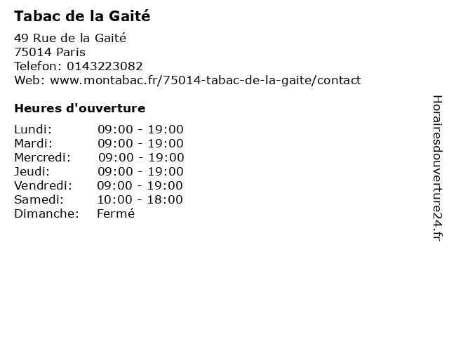 | Horaires d'ouverture | ||
