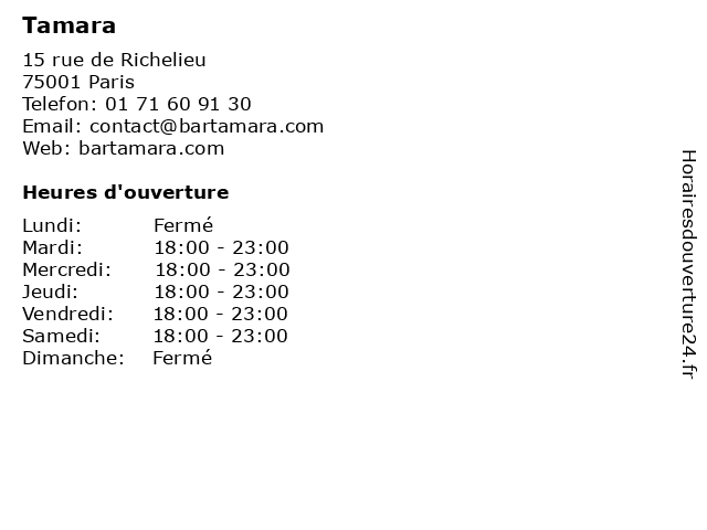 | Samedi | 18:00-23:00 |