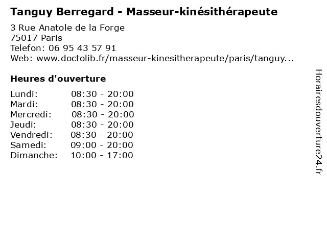| Vendredi | 08:30-20:00 |