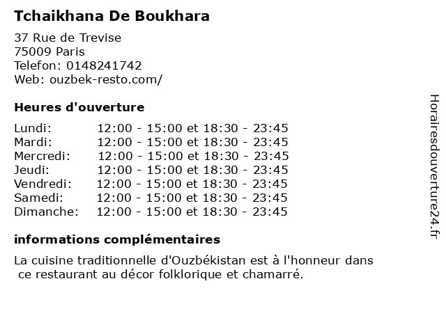 | Dimanche | 12:00-15:00 et 18:30-23:45 |