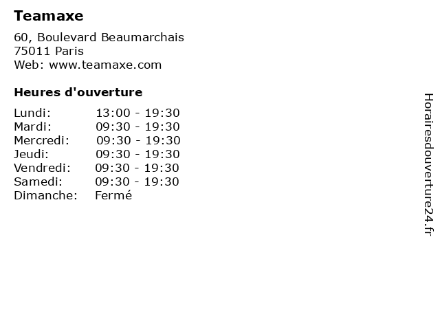 | Lundi | 13:00-19:30 |