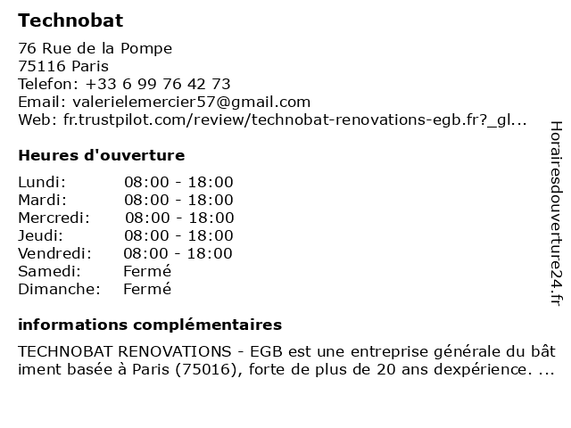 2 Technobat Construction (Distance: 42,04 km) 65 rue Lavoisier, 77240 Cesson bois, construction, maçonnerie, rénovation, technobat, travaux |
