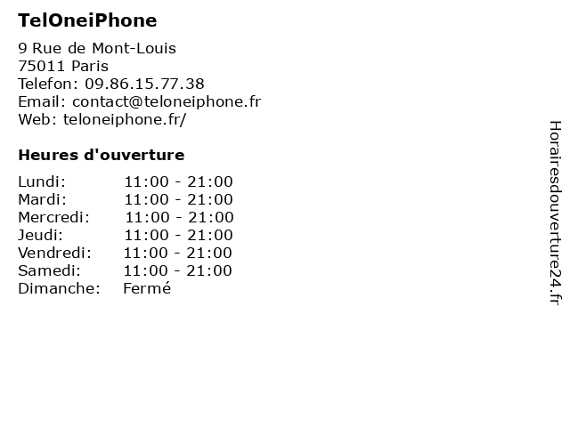 | Lundi | 11:00-21:00 |