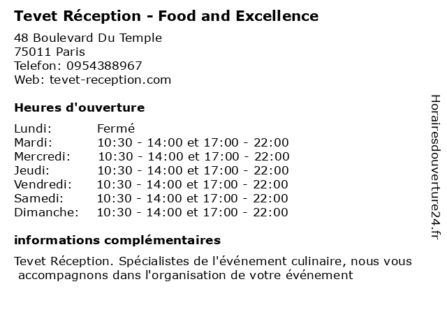 | Mardi | 10:30-14:00 et 17:00-22:00 |