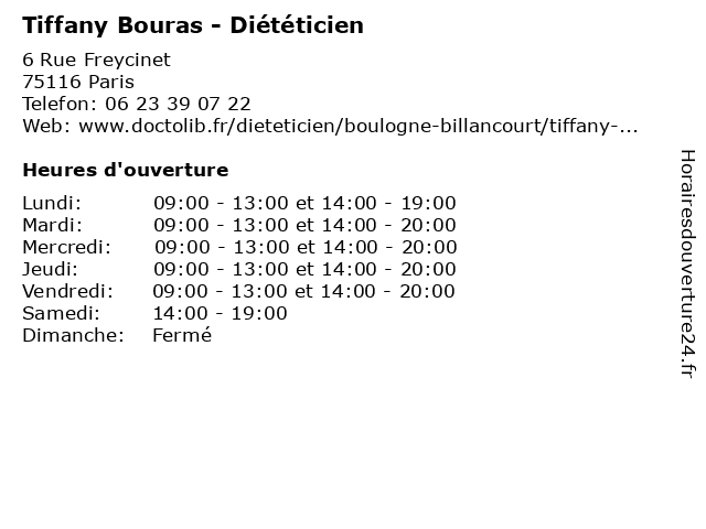 | Lundi | 09:00-13:00 et 14:00-19:00 |