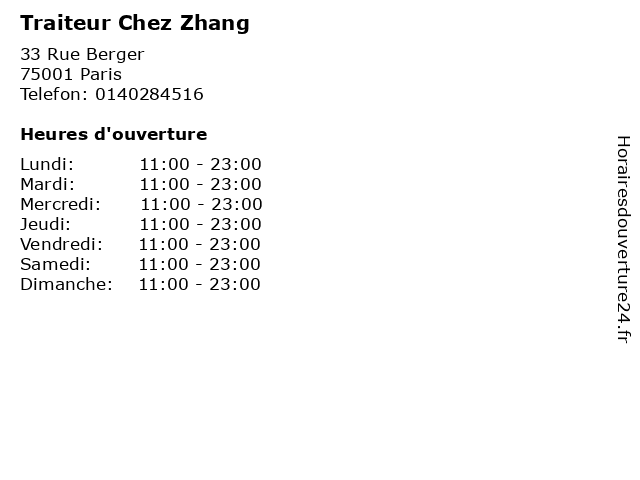 | Jeudi | 11:00-23:00 |