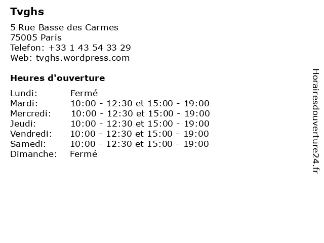 | Samedi | 10:00-12:30 et 15:00-19:00 |